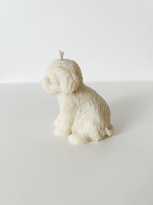 UitverkochtHandgegoten kaars hondje beige