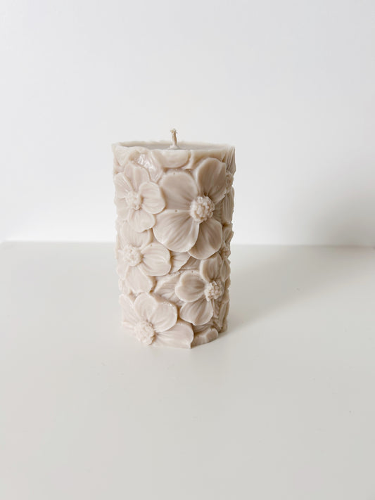 UitverkochtHandgegoten kaars bloemen beige