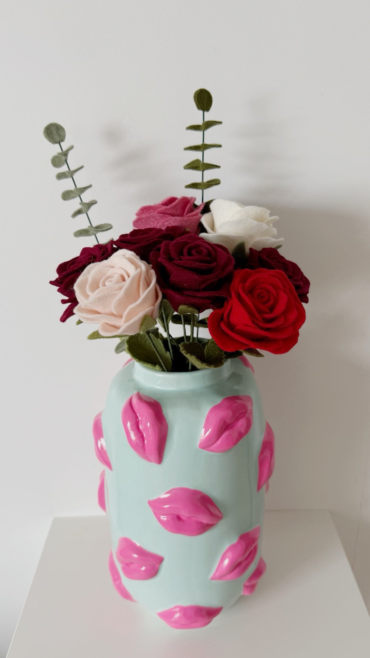 Deze prachtige unieke vaas van keramiek is een echte eyecatcher! Dé trend van nu zijn felle kleuren en bijzondere designs. Vul de vaas met een bos kleurrijke viltbloemen of enkele statement takken voor een frisse look!
